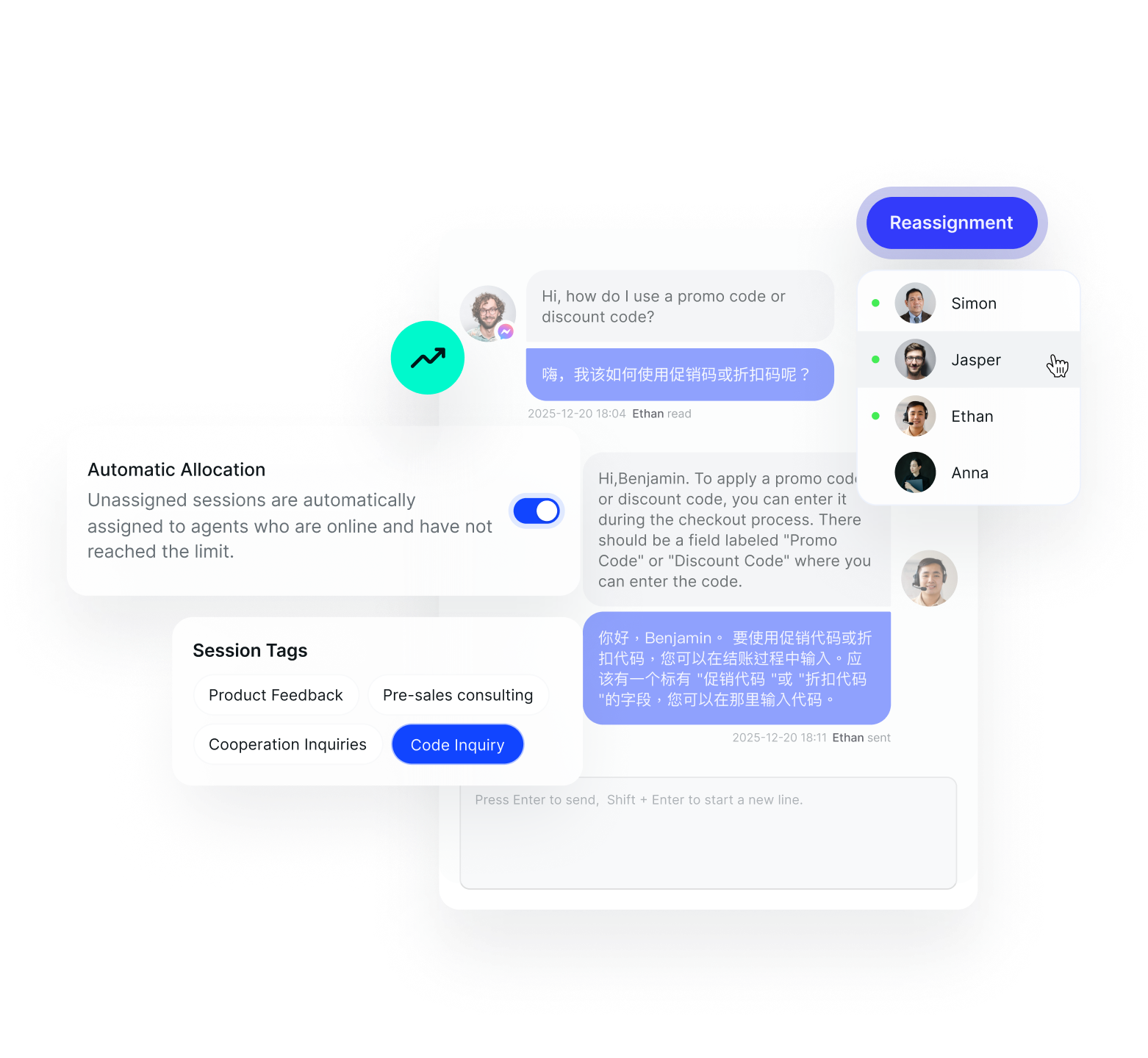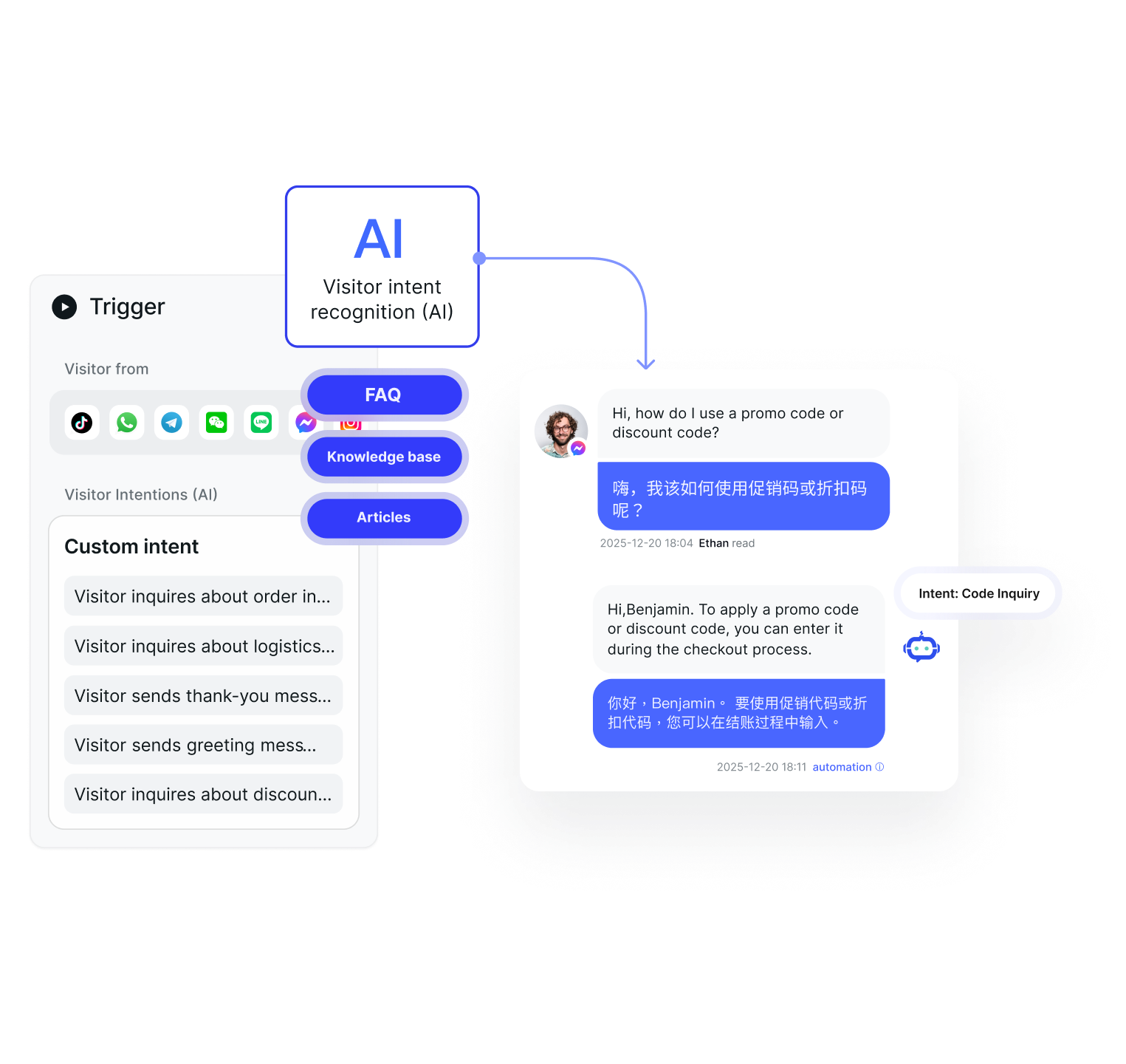 SaleSmartly chatbots recognize customer intent and send instant replies, ensuring timely responses during peak traffic.